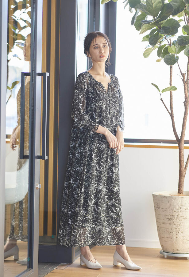 ロートレアモンのワンピース ボタニカルプリントを 柔らかな素材に落とし込んだ シックな一枚 Amarc